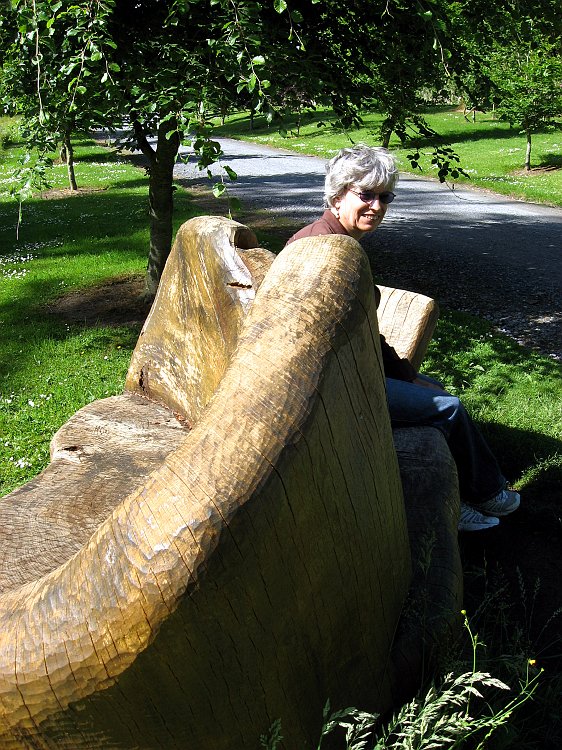 Love seat made from a single tree stump.